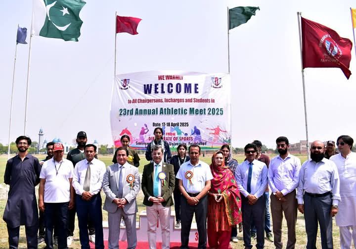 The spirit of sportsmanship came alive as GC University Faisalabad inaugurated its 𝟐𝟑𝐫𝐝 𝐀𝐧𝐧𝐮𝐚𝐥 𝐀𝐭𝐡𝐥𝐞𝐭𝐢𝐜𝐬 𝐌𝐞𝐞𝐭 𝟐𝟎𝟐𝟓, organized by the Directorate of Sports.