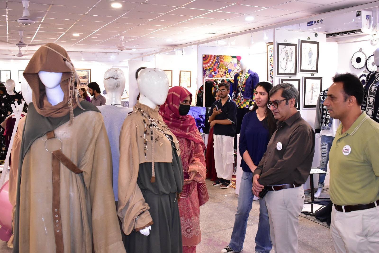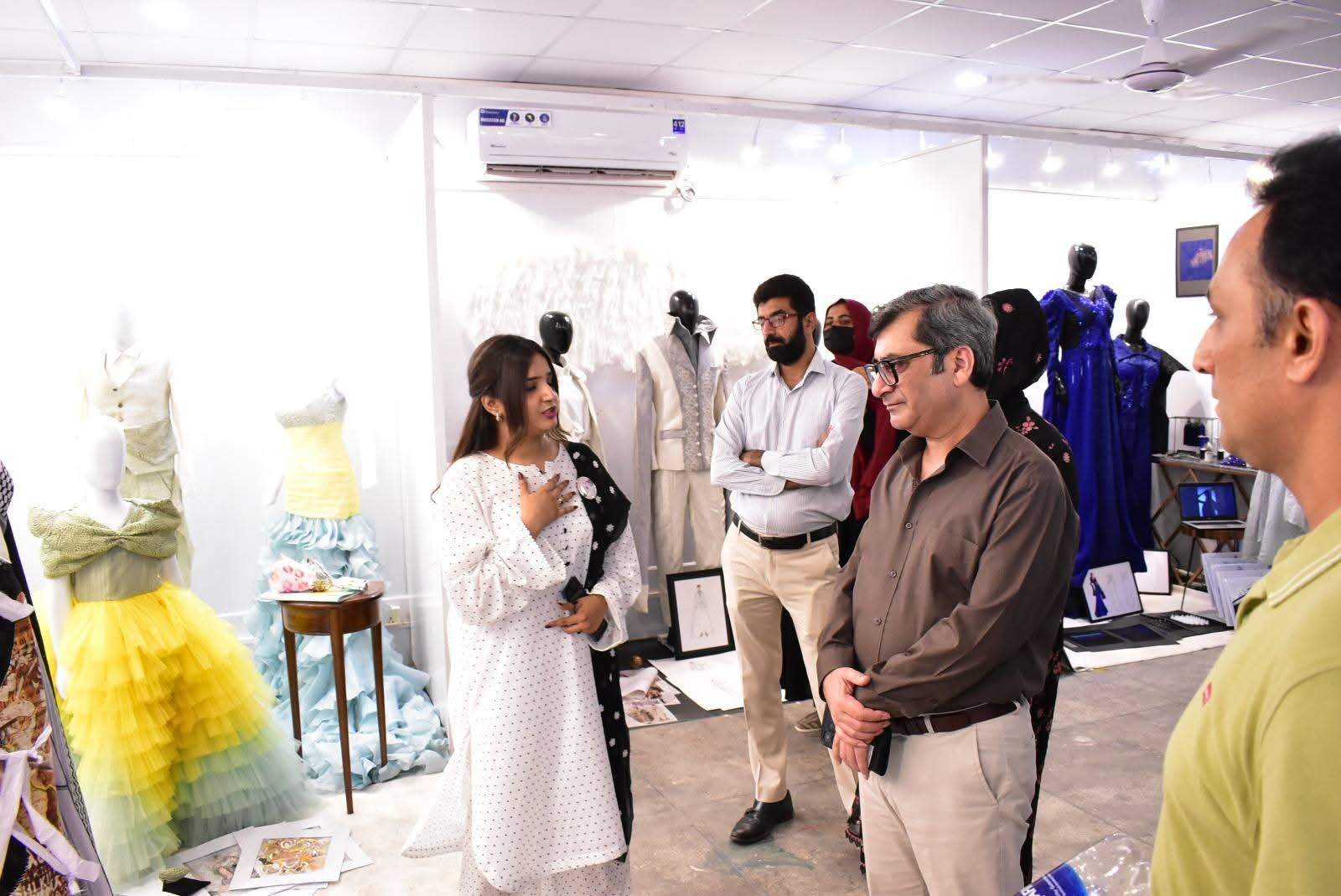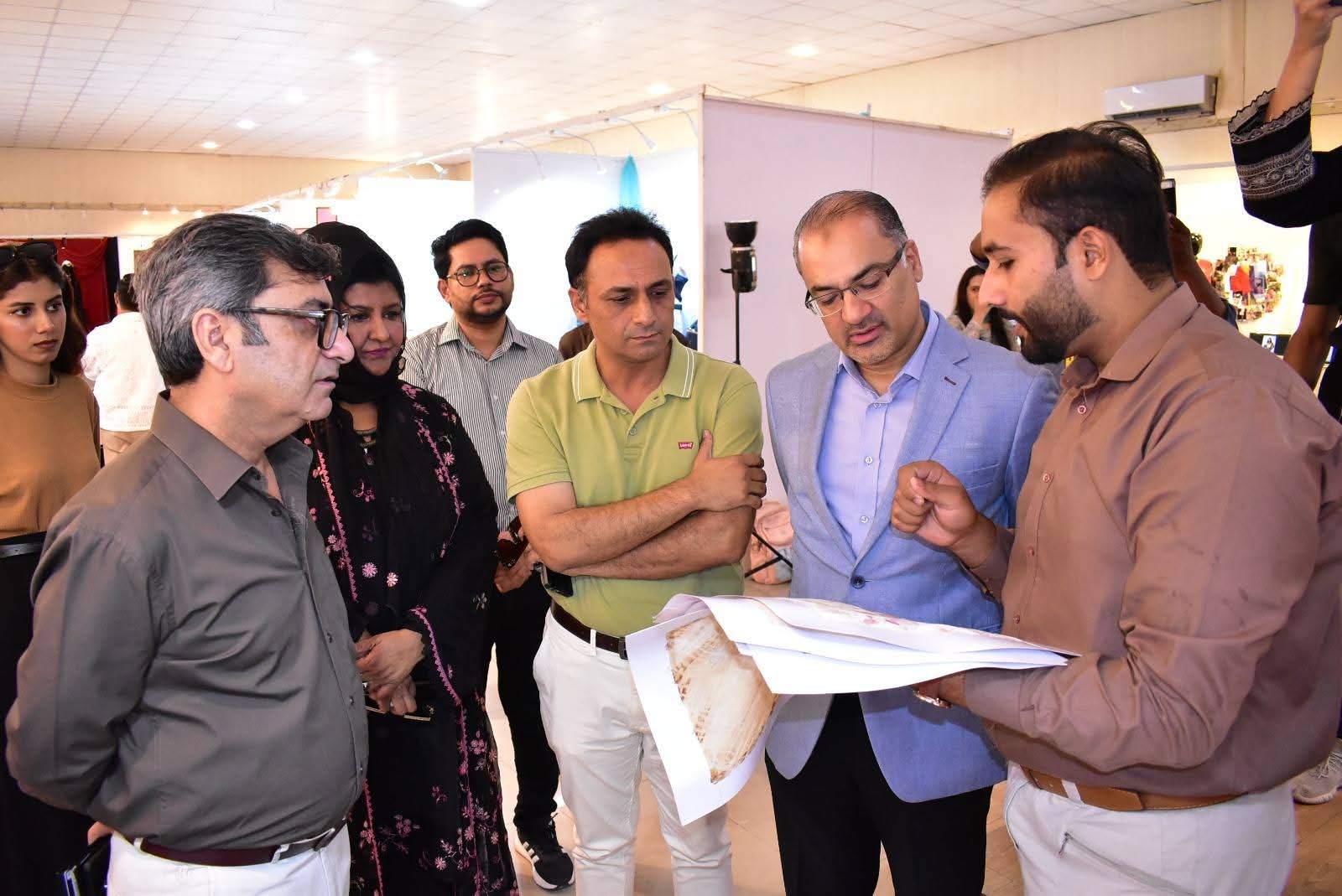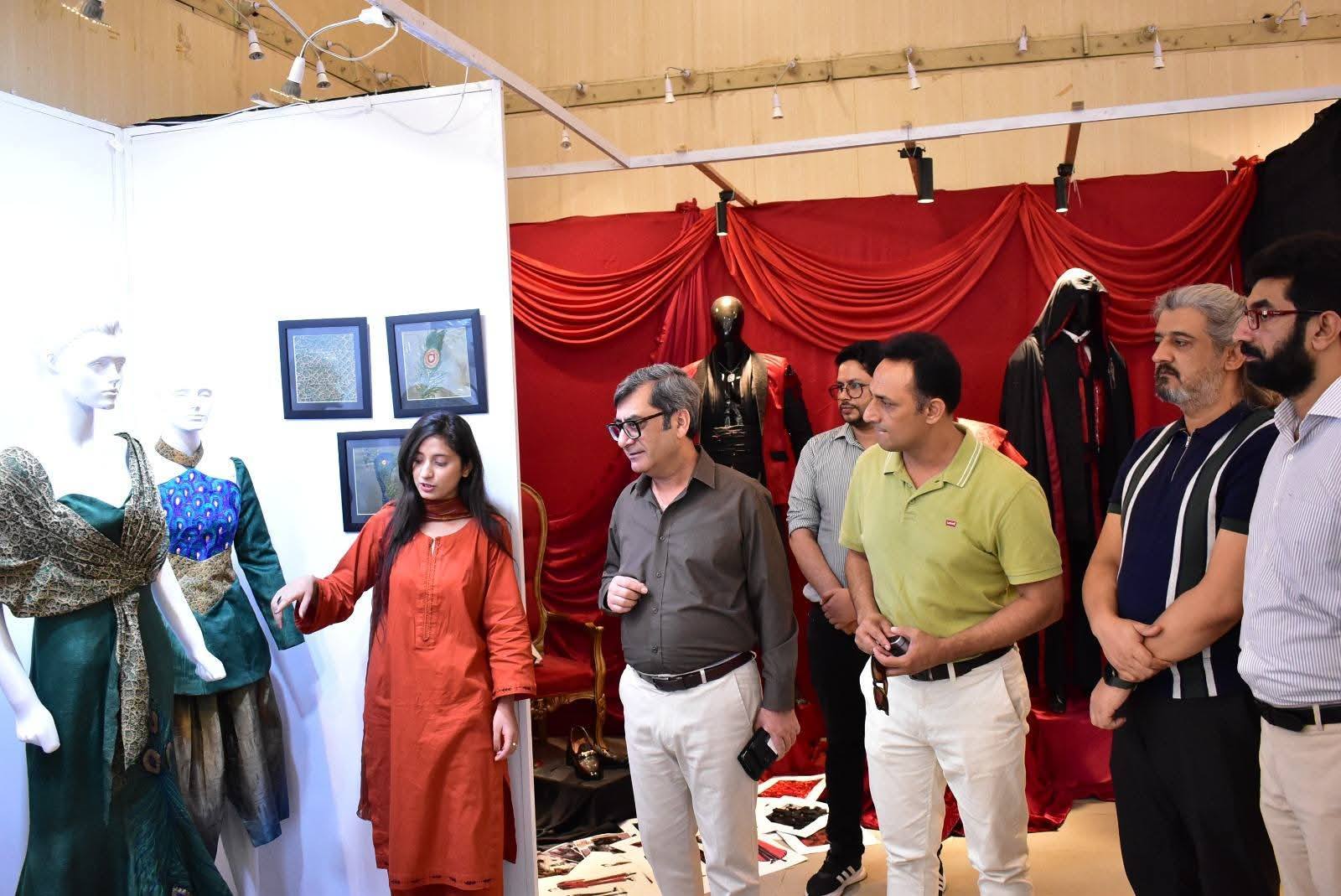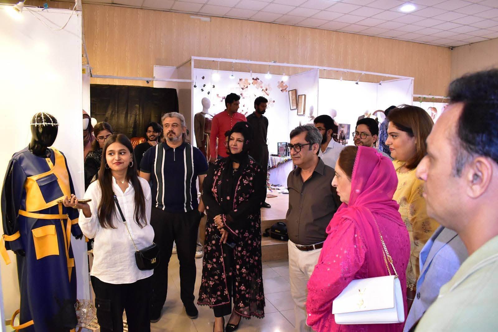 The exhibition was formally inaugurated by Vice Chancellor 𝐏𝐫𝐨𝐟. 𝐃𝐫. 𝐑𝐚𝐮𝐟-𝐢-𝐀𝐳𝐚𝐦, who appreciated the students’ artistic expression and innovative approach. He was joined at the event by 𝐌𝐬. Qurrat Ul Ain Vice President, The Federation of Pakistan chamber of commerce and industry, 𝐌𝐬. 𝐑𝐮𝐛𝐢𝐧𝐚 𝐀𝐦𝐣𝐢𝐝 and 𝐌𝐫 𝐌𝐮𝐳𝐚𝐦𝐢𝐥 𝐒𝐮𝐥𝐭𝐚𝐧 from Faisalabad Chamber of Commerce and industry and 𝐌𝐬. 𝐓𝐞𝐡𝐦𝐢𝐧𝐚 𝐀𝐟𝐳𝐚𝐥, Incharge of the Institute of Art and Design along with faculty members and other distinguished guests.