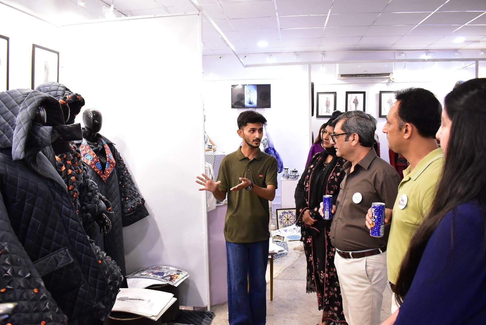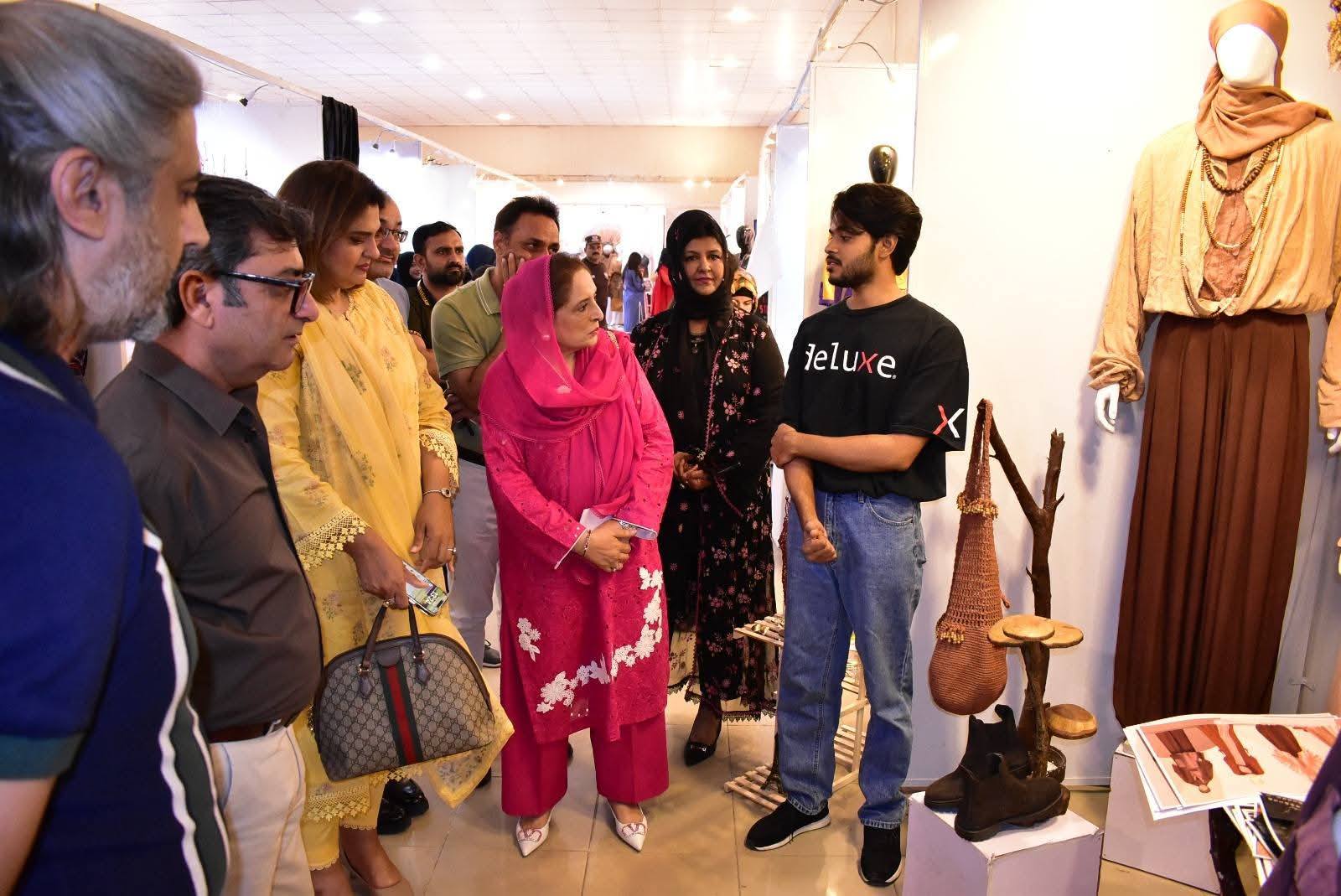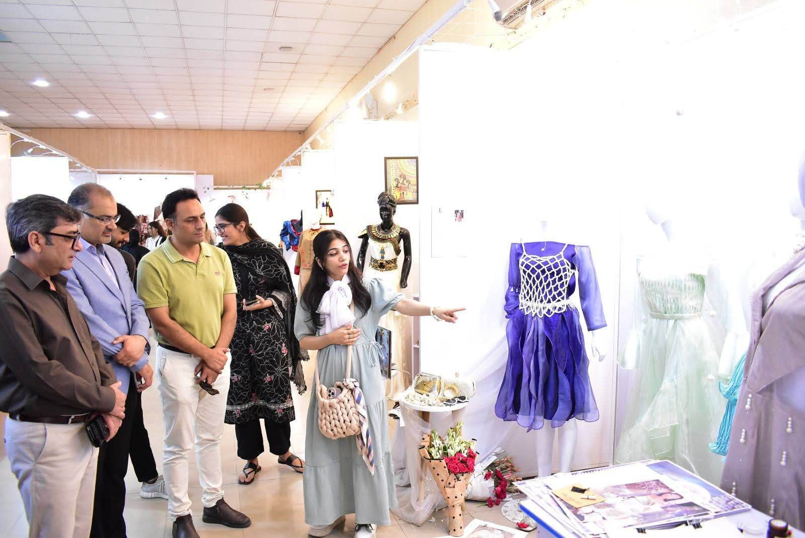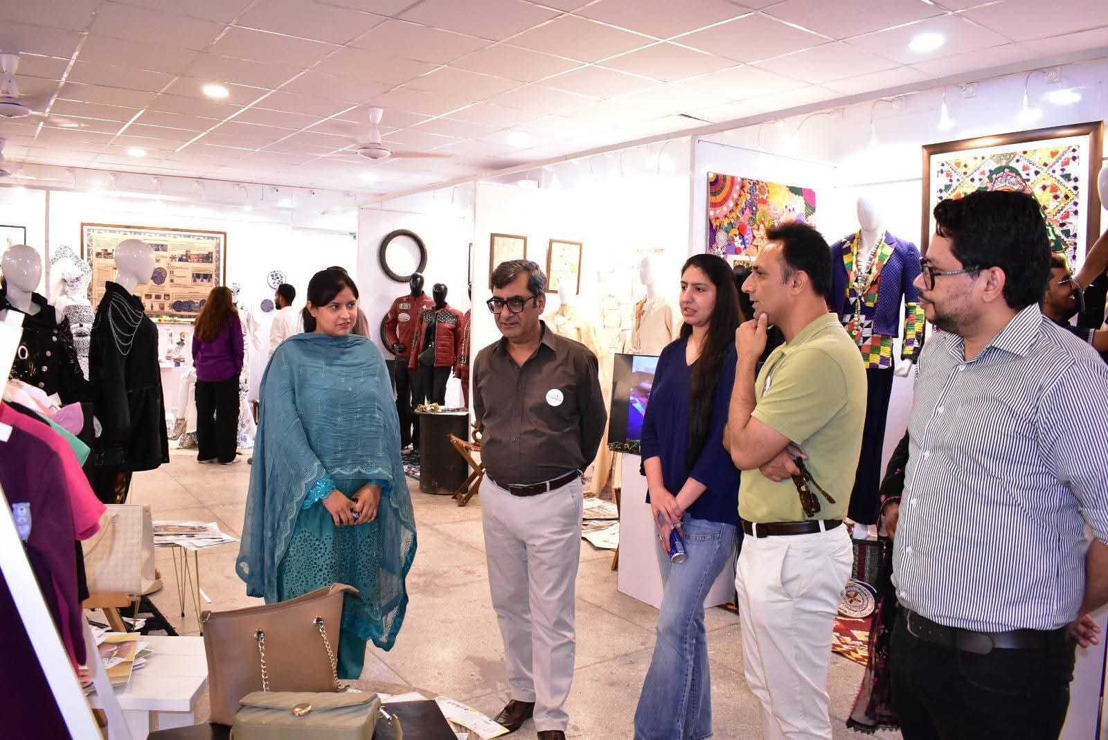 The exhibition was formally inaugurated by Vice Chancellor 𝐏𝐫𝐨𝐟. 𝐃𝐫. 𝐑𝐚𝐮𝐟-𝐢-𝐀𝐳𝐚𝐦, who appreciated the students’ artistic expression and innovative approach. He was joined at the event by 𝐌𝐬. Qurrat Ul Ain Vice President, The Federation of Pakistan chamber of commerce and industry, 𝐌𝐬. 𝐑𝐮𝐛𝐢𝐧𝐚 𝐀𝐦𝐣𝐢𝐝 and 𝐌𝐫 𝐌𝐮𝐳𝐚𝐦𝐢𝐥 𝐒𝐮𝐥𝐭𝐚𝐧 from Faisalabad Chamber of Commerce and industry and 𝐌𝐬. 𝐓𝐞𝐡𝐦𝐢𝐧𝐚 𝐀𝐟𝐳𝐚𝐥, Incharge of the Institute of Art and Design along with faculty members and other distinguished guests.