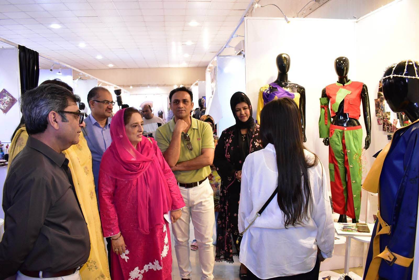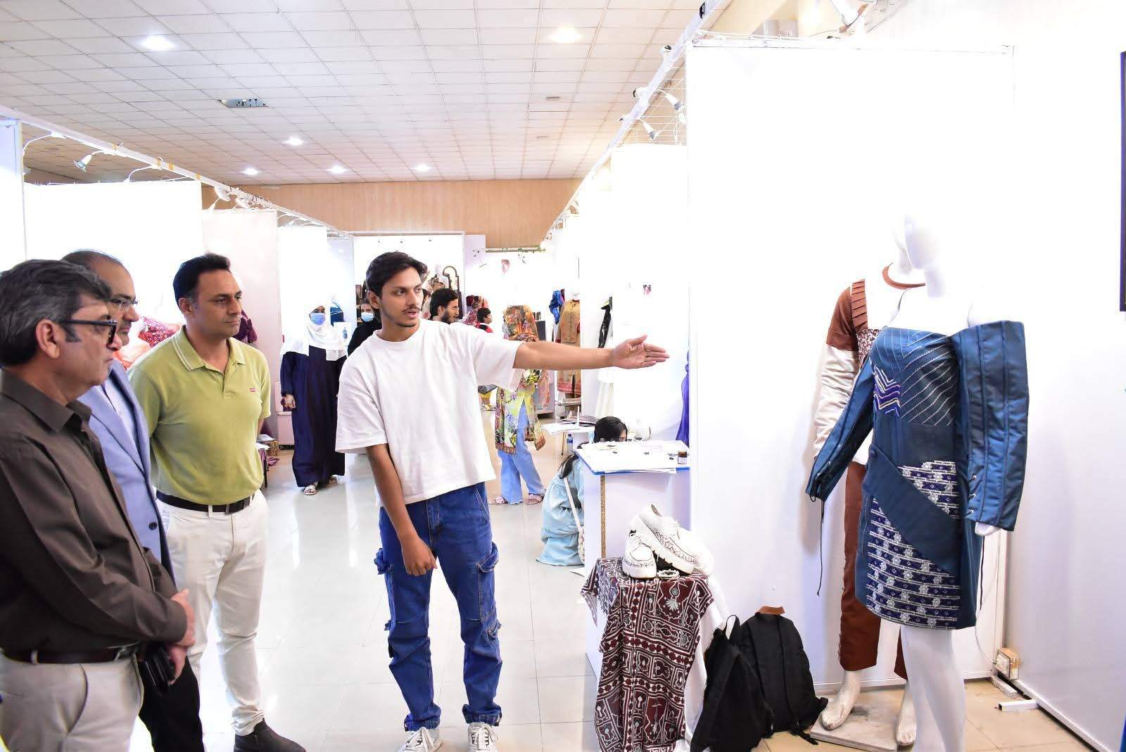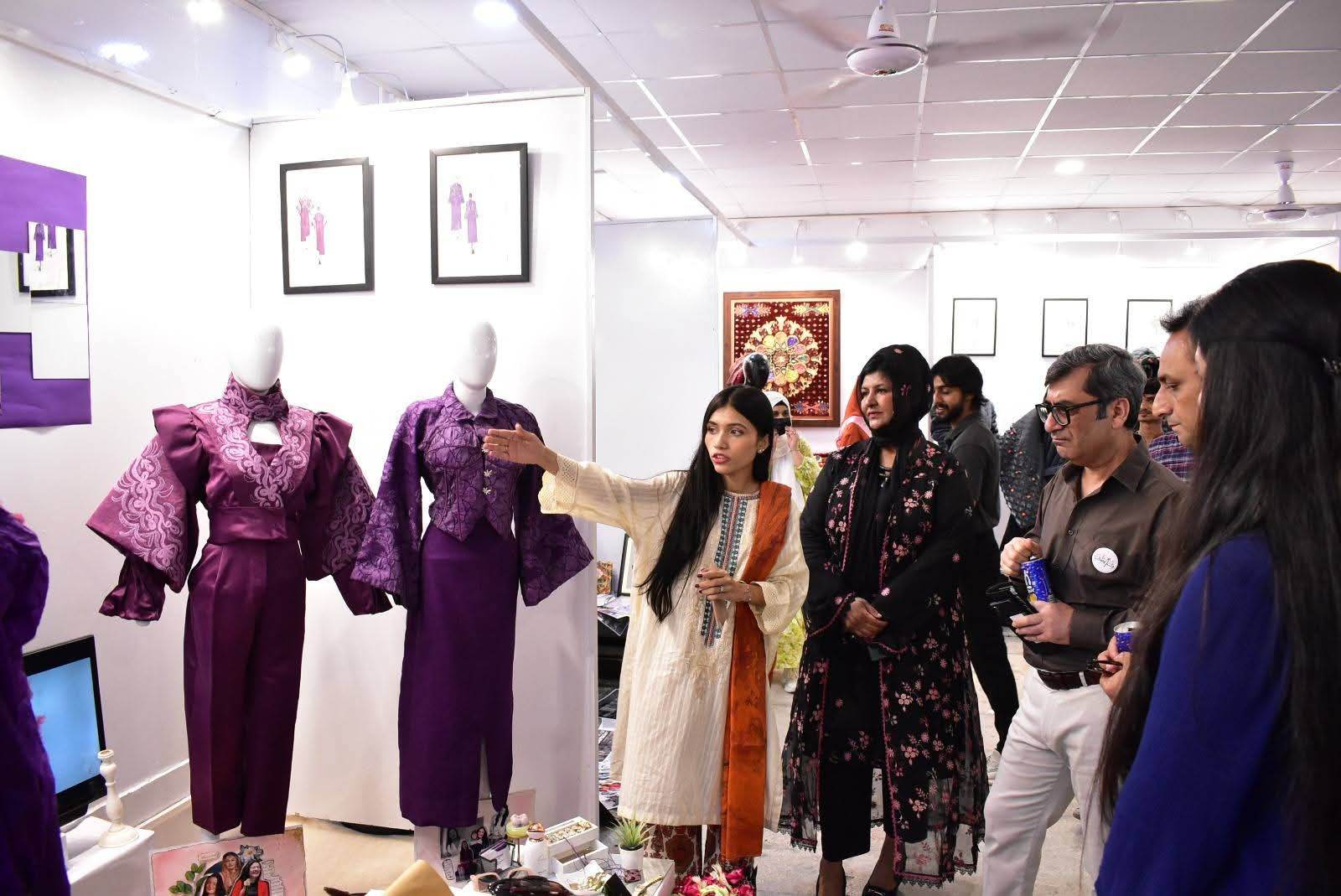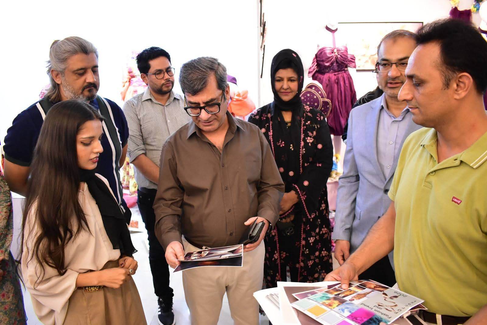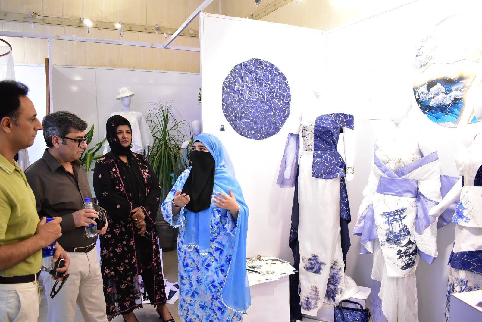 The exhibition was formally inaugurated by Vice Chancellor 𝐏𝐫𝐨𝐟. 𝐃𝐫. 𝐑𝐚𝐮𝐟-𝐢-𝐀𝐳𝐚𝐦, who appreciated the students’ artistic expression and innovative approach. He was joined at the event by 𝐌𝐬. Qurrat Ul Ain Vice President, The Federation of Pakistan chamber of commerce and industry, 𝐌𝐬. 𝐑𝐮𝐛𝐢𝐧𝐚 𝐀𝐦𝐣𝐢𝐝 and 𝐌𝐫 𝐌𝐮𝐳𝐚𝐦𝐢𝐥 𝐒𝐮𝐥𝐭𝐚𝐧 from Faisalabad Chamber of Commerce and industry and 𝐌𝐬. 𝐓𝐞𝐡𝐦𝐢𝐧𝐚 𝐀𝐟𝐳𝐚𝐥, Incharge of the Institute of Art and Design along with faculty members and other distinguished guests.