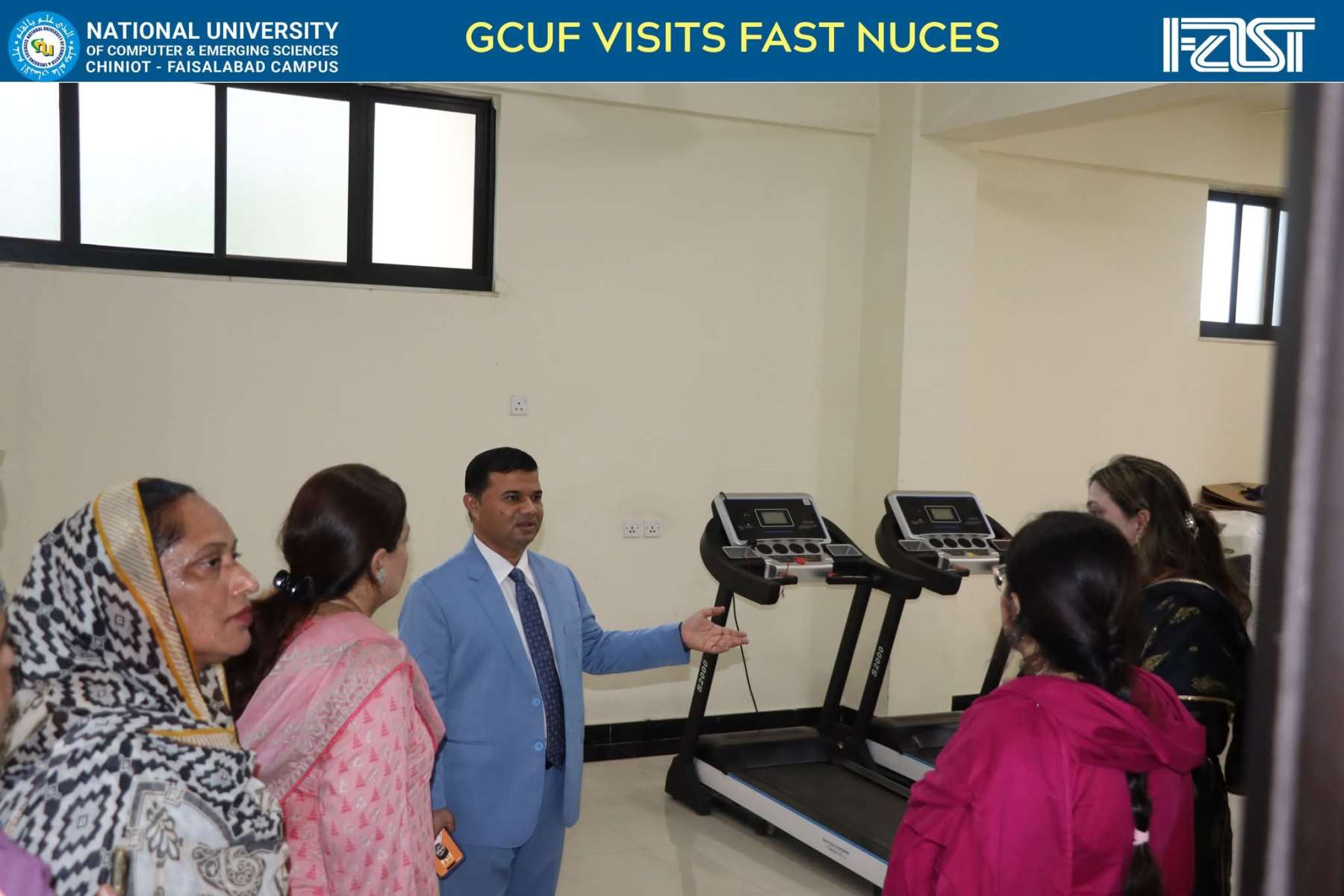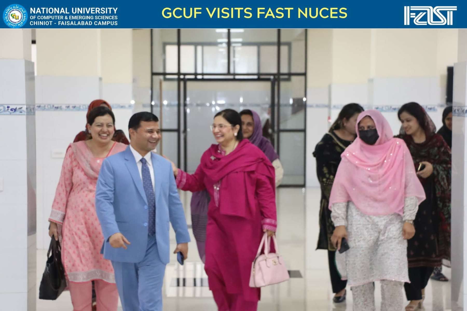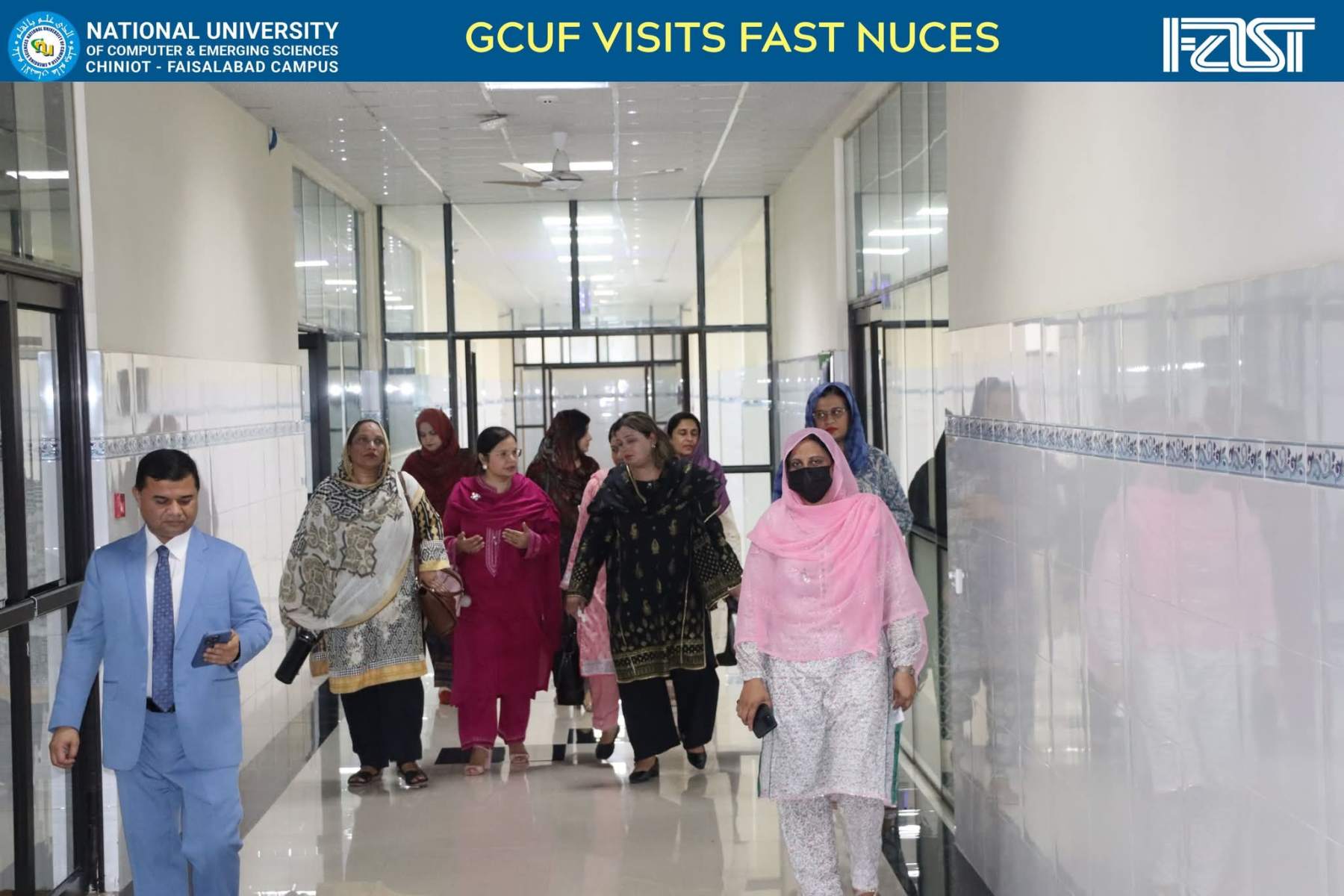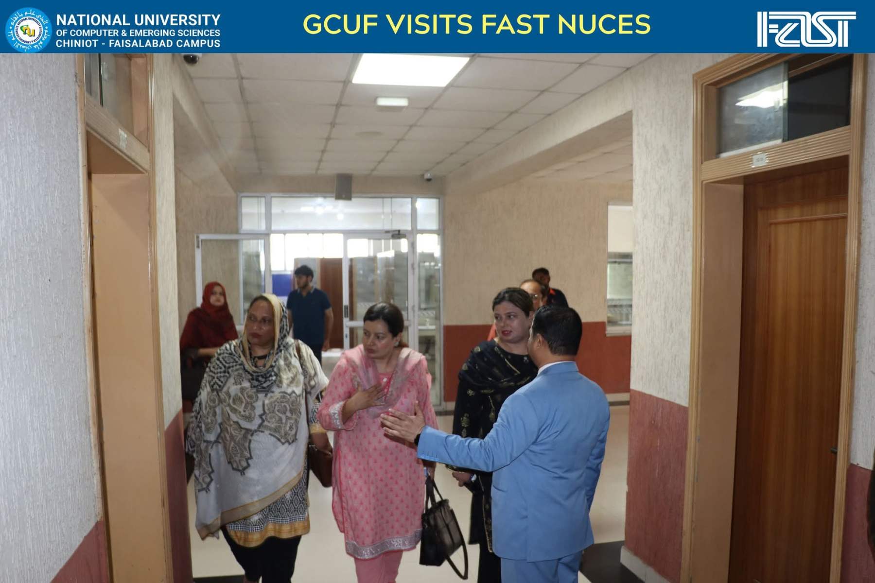 A delegation from Government College University, Faisalabad (GCUF) visited FAST National University of Computer and Emerging Sciences, Chiniot-Faisalabad Campus to explore its infrastructure and administrative practices of the hostel. Led by Prof. Dr. Shahzad Sarfraz, Director FAST-NUCES CFD Campus, the delegation toured key facilities including academic blocks, engineering and computer labs, library, auditorium, classrooms, cafeteria, and hostels. They were briefed on automated systems for attendance, mess and hostel management, hostel purchase procedures, and hostel SOPs. The visit concluded with thanks and appreciation from the delegation for FAST-NUCES’s commitment to quality education and operational excellence.