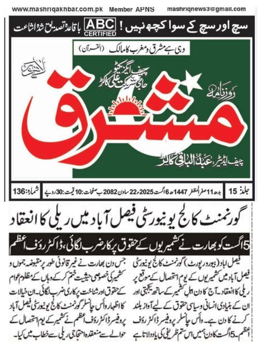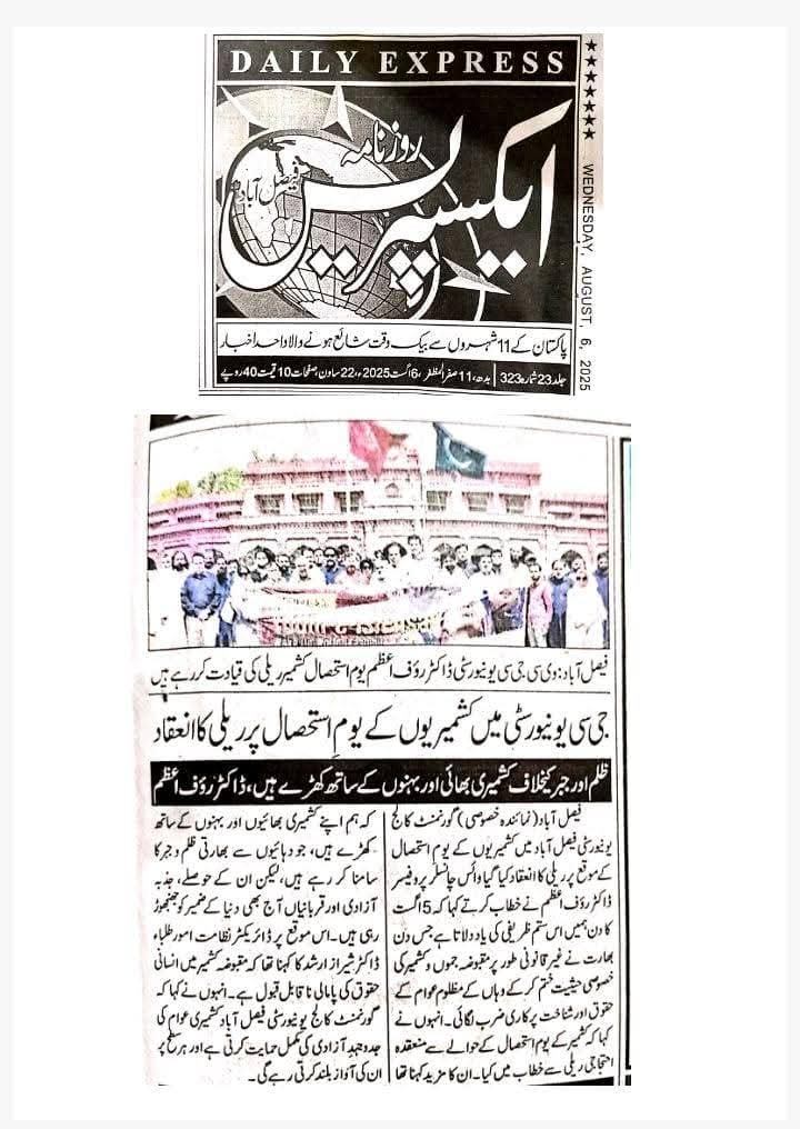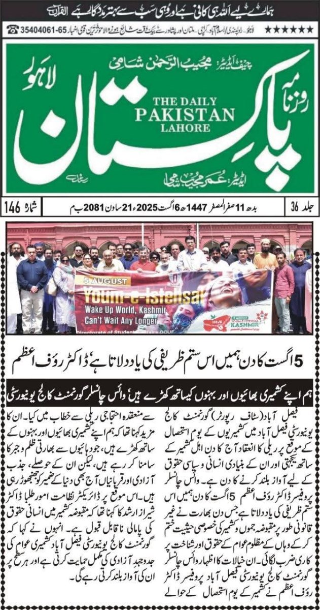 Today is a day to express solidarity with the people of Kashmir and to raise our voice for their fundamental human and political rights — Vice Chancellor Prof. Dr. Rauf Azam.