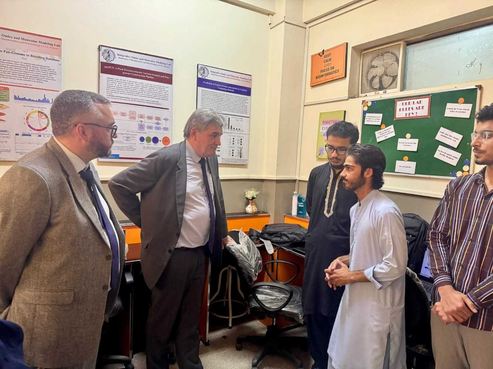 During their visit, the distinguished guests were warmly received by Prof. Dr. Nasir Amin, Pro-Vice Chancellor, along with Dr. Muhammad Kamran Khan, Coordinator Pak–France Network, Prof. Dr. Tanvir Shahzad, Director ORIC, Dr. Sabir Hussain, Chairman Department of Environmental Sciences, Dr. Nazir Ahmad, Chairman Department of Nutritional Sciences, and Dr. Tahir ul Qamar, Deputy Director International lineages.