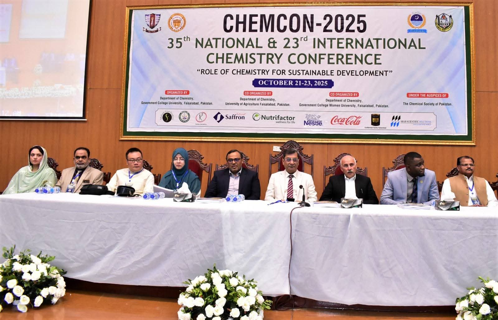 The 35th National and 23rd International Chemistry Conference, titled “Role of Chemistry for Sustainable Development,” began with great enthusiasm at Government College University Faisalabad. The event is organized by the Department of Chemistry, GCUF, in collaboration with the Chemical Society of Pakistan (CSP), and supported by the University of Agriculture Faisalabad and the Government College Women University Faisalabad.