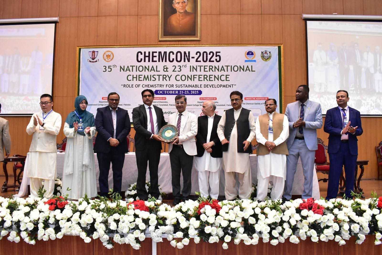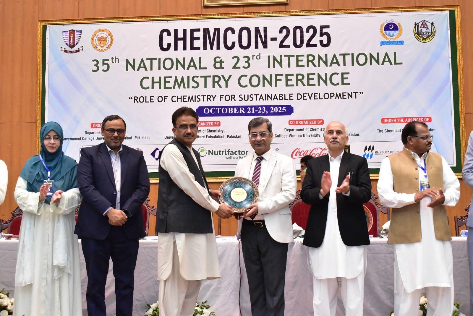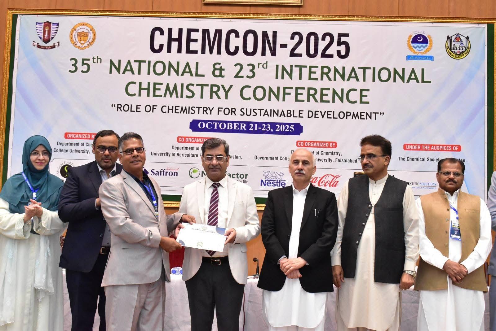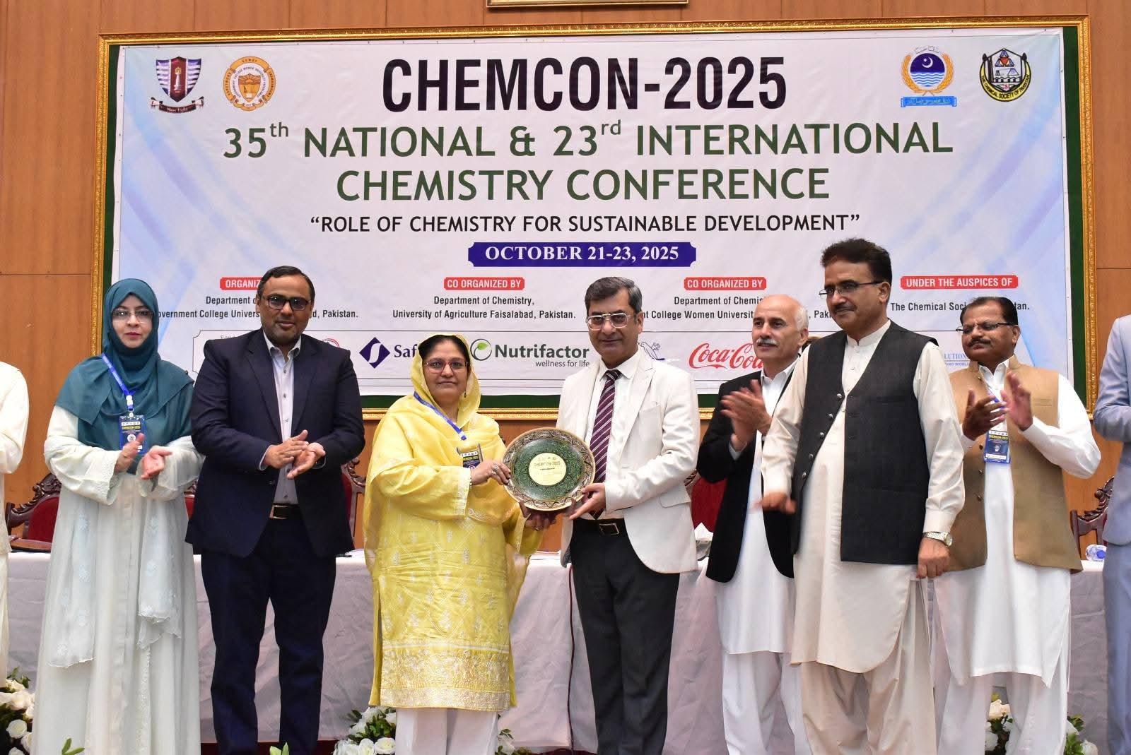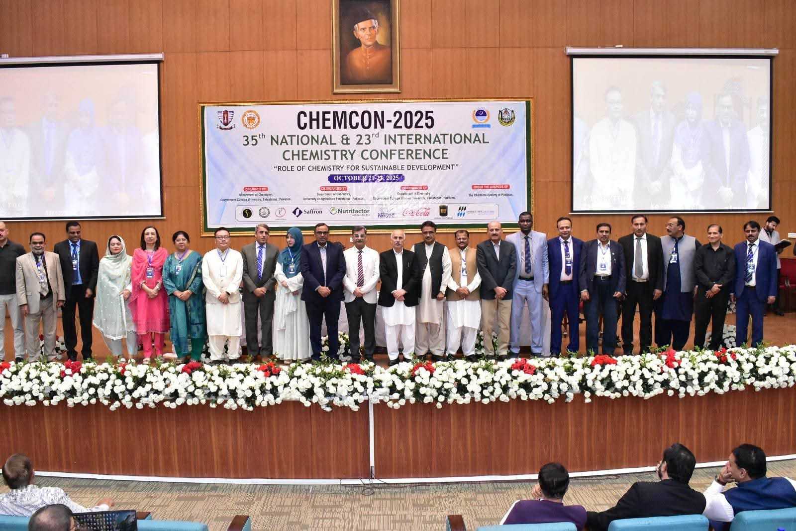 The 35th National and 23rd International Chemistry Conference, titled “Role of Chemistry for Sustainable Development,” began with great enthusiasm at Government College University Faisalabad. The event is organized by the Department of Chemistry, GCUF, in collaboration with the Chemical Society of Pakistan (CSP), and supported by the University of Agriculture Faisalabad and the Government College Women University Faisalabad.