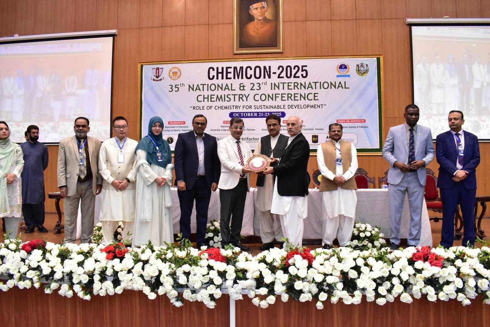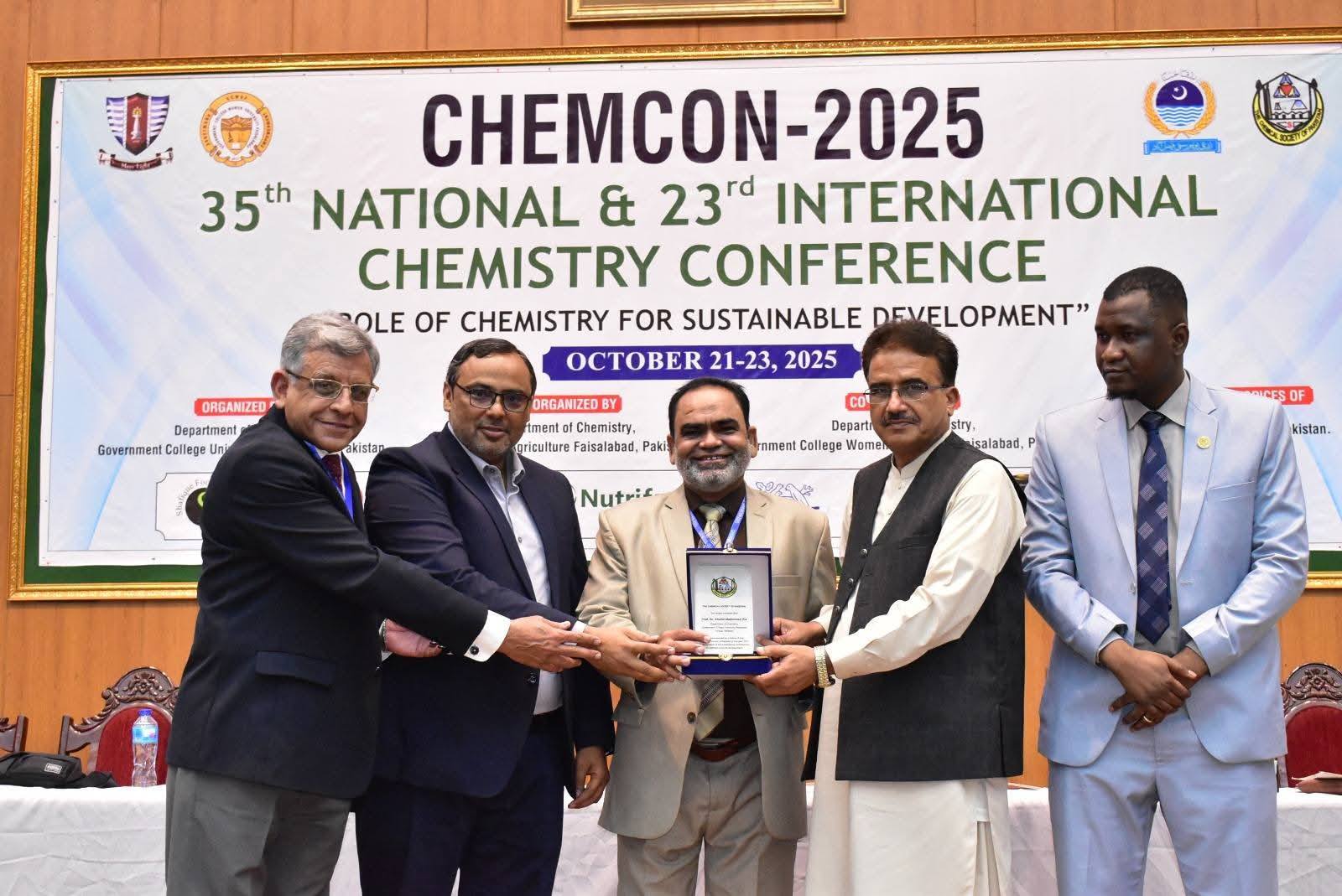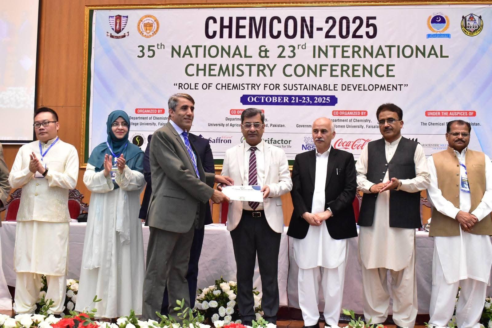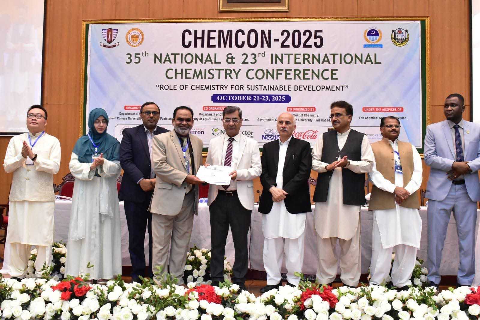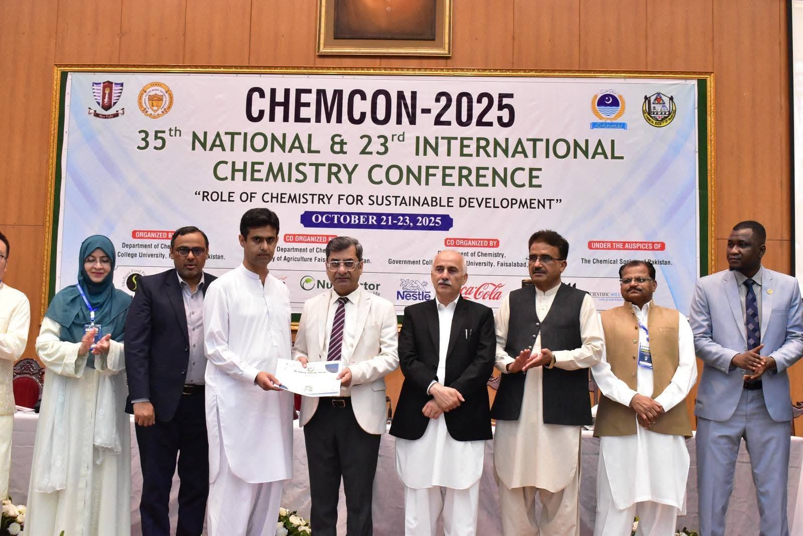 The 35th National and 23rd International Chemistry Conference, titled “Role of Chemistry for Sustainable Development,” began with great enthusiasm at Government College University Faisalabad. The event is organized by the Department of Chemistry, GCUF, in collaboration with the Chemical Society of Pakistan (CSP), and supported by the University of Agriculture Faisalabad and the Government College Women University Faisalabad.