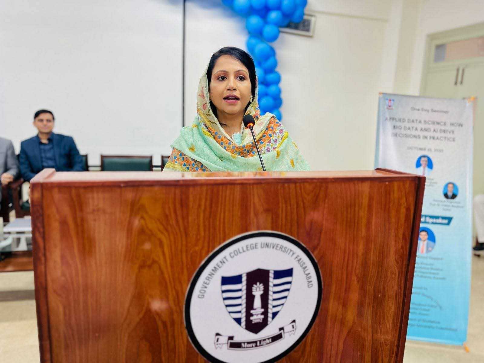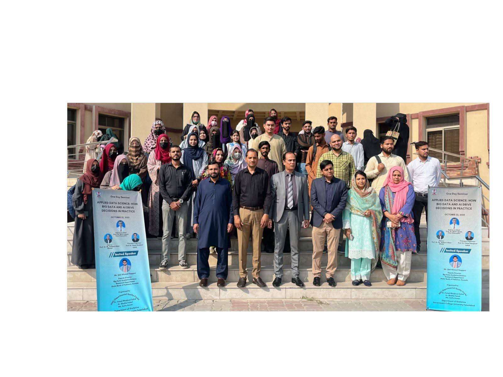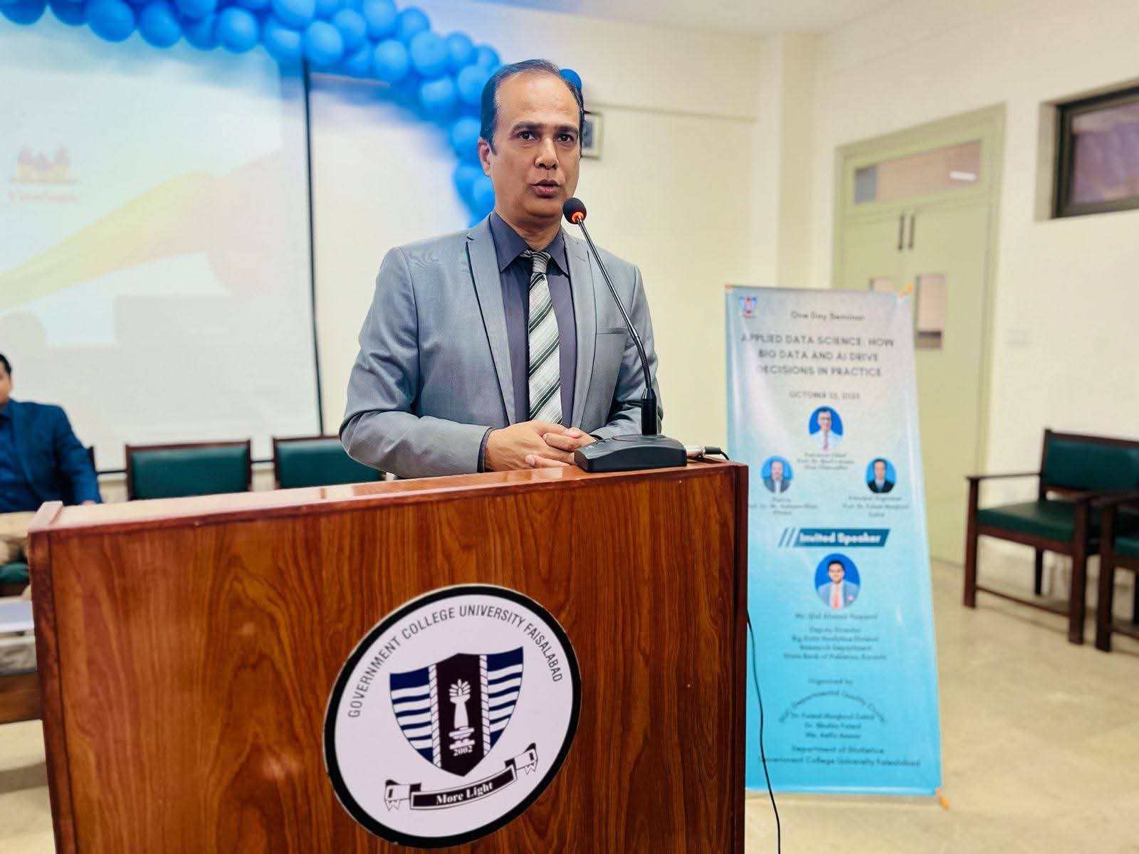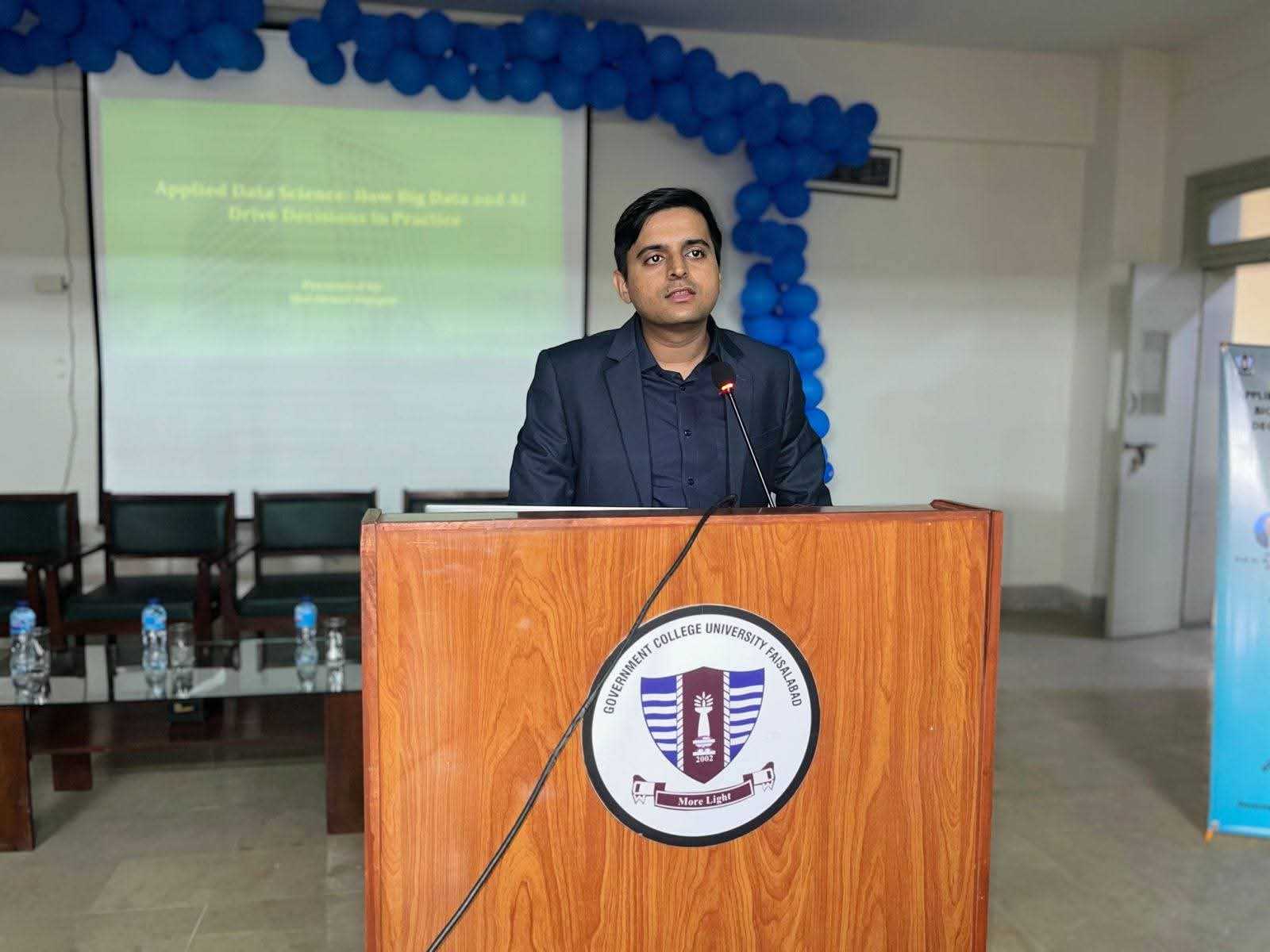 The Department of Statistics, Government College University Faisalabad, organized a one-day seminar titled “Applied Data Science: How Big Data and AI Drive Decisions in Practice.” The seminar aimed to highlight the emerging role of data science, artificial intelligence (AI), and statistical methodologies in modern decision-making across business, finance, and policy domains.