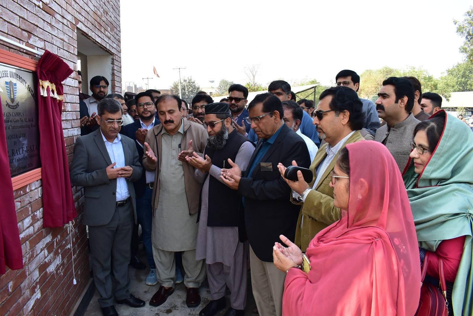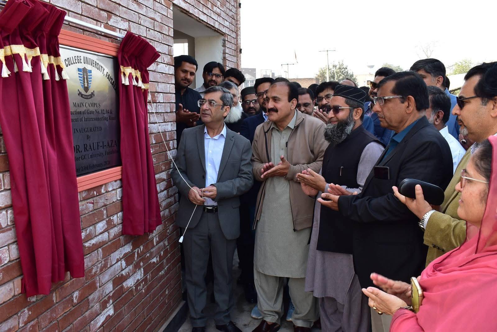 The Vice Chancellor of Government College University Faisalabad, Prof Dr Rauf-i-Azam, inauguration the Gate No. 2 and Gate No. 4, including newly designated entry and exit points, along with the improvement of the interconnecting road at the university’s main campus.