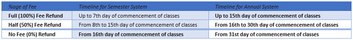 Timeline shall be calculated continuously, covering both weekdays and weekend w.e.f date of recommendation of HOD. However, application for refund of fee must be received within two days after recommendation of HOD otherwise, date of receipt of application in Fee Section would be considered.